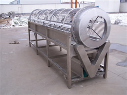 滾筒分級機又稱為鼠籠式分級機:除機架傳動部分,其余均為不銹鋼衛生級304制作,篩網先沖孔,后經機械卷圓處理,使之在使用過程中不傷害物料,篩網孔徑也可根據用戶要求設計制作,產品通過提升機輸送到分級機里面,由于傳動作用,滾筒在不停地運轉,物料從小到大分級出來。可將原料分為3-10等級。大棗分級機使用范圍:本機適用于大棗、冬棗、小西紅柿、蒜米、山楂、桃子、胡蘿卜、桔子、香菇、土豆、洋蔥等分級使用,具有分級標準、效率高等優點,配套調速電機及防撞墊,可根據品種調節速度減小撞擊力,保障產品無破損。