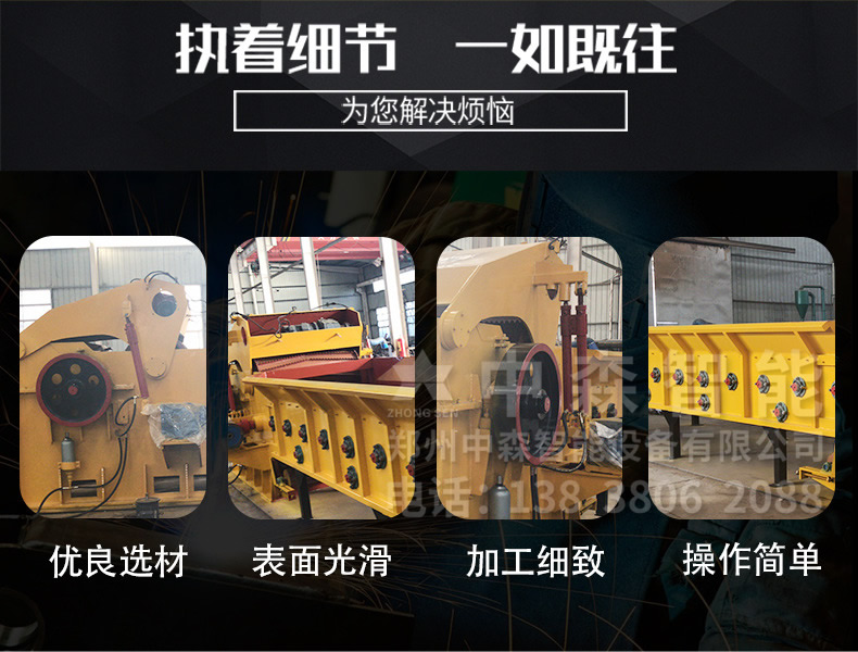 【產品介紹】中森智能專注廢舊模板破碎機20余年,從研發設計生產到銷售,現已形成一體化制造商以及售后服務商;移動式木頭破碎機是加工生物質顆粒,造紙,木炭,多種板材,食用菌,生物發電,園林,木屑,有機肥等農,林,工業生產配套設備.可粉碎多種雜木,木材,木頭,模板,邊角料,樹枝,竹子,園林綠化,食用菌等物料。