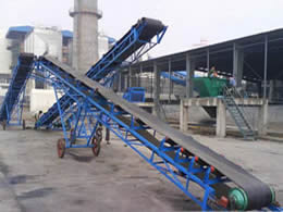 膠帶輸送機(jī)主要由機(jī)架、輸送皮帶、皮帶輥筒、張緊裝置、傳動(dòng)裝置等組成。機(jī)身采用優(yōu)質(zhì)鋼板連接而成 ,由前后支腿的高低差形成機(jī)架,平面呈一定角度傾斜。機(jī)架上裝有皮帶輥筒、托輥等,用于帶動(dòng)和支承輸送皮帶。有減速電機(jī)驅(qū)動(dòng)和電動(dòng)滾筒驅(qū)動(dòng)兩種方式。