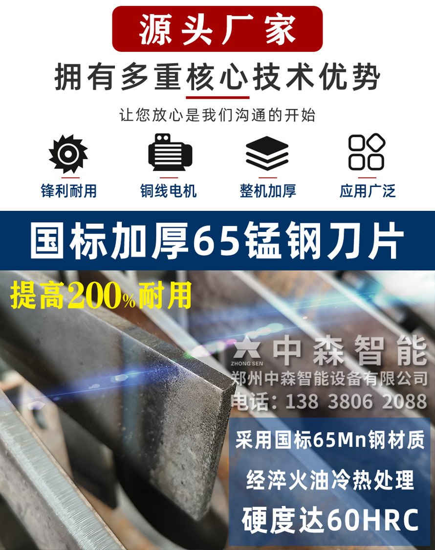 【產品介紹】中森智能專注于木材粉碎機20余年,從研發設計生產到銷售,現已形成一體化制造商以及售后服務商;木材粉碎機是加工生物質顆粒,造紙,木炭,多種板材,食用菌,生物發電,園林,木屑,有機肥等農,林,工業生產配套設備.可粉碎多種雜木,木材,木頭,模板,邊角料,樹枝,竹子,園林綠化,食用菌等物料。