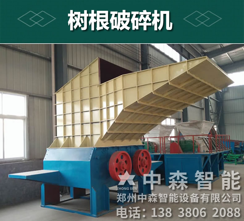 【產品名稱】樹根破碎機(樹疙瘩破碎機、移動式樹根破碎機)可加裝輪子移動,使用更方便,上客戶可通過喂料設備或鏟車直接將樹根等大型木料進行直接破碎切片。如果使用現場沒有配套電力,我公司可為客戶配備相應的柴油機代替電動機動力,解決了山區、林場的無動力問題
