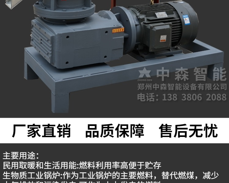 【產品介紹】中森智能專注于生物顆粒機械設備廠家20余年,從研發設計生產到銷售,現已形成一體化制造商以及售后服務商;顆粒機適用于各種木材,農作物,鋸末木屑,秸稈,稻草,玉米芯,牛羊糞,食用菌,甘蔗渣等物料加工生物質顆粒。用于燒鍋爐,取暖,養殖,生物電廠,服裝廠,造紙廠,電子等行業。