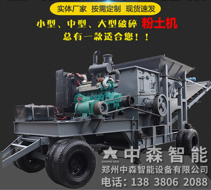 土壤粉土機是我廠專門為難以破碎的土質專門設計制造的一種碎土機,該機采用特殊材料,經試用該粘性土粉土機可以破水份含量小于25%以下的黏性土和黃土、凍土、產量能到達到每小時50—200噸。