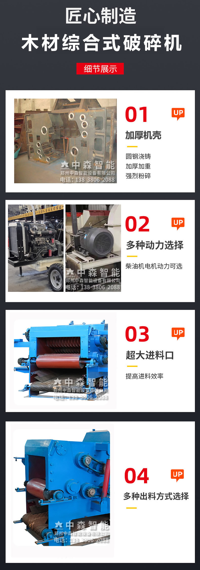 【產品介紹】中森智能專注木材綜合式破碎機20余年,從研發設計生產到銷售,現已形成一體化制造商以及售后服務商;木材邊角料破碎機是加工生物質顆粒,造紙,木炭,多種板材,食用菌,生物發電,園林,木屑,有機肥等農,林,工業生產配套設備.可粉碎多種雜木,木材,木頭,模板,邊角料,樹枝,竹子,園林綠化,食用菌等物料。